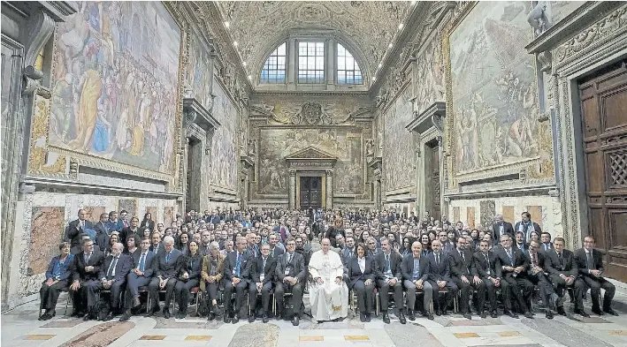 Reunión de juristas en el Vaticano. El Papa Francisco rodeado de abogados de todo el mundo, entre ellos Roberto Carlés, frustrado candidato de Cristina Kirchner a la Corte.